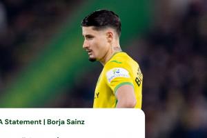 体育资讯1月10日讯 英足总官方消息,诺维奇球员博尔哈-塞恩斯因为朝对手吐口水,被罚禁赛6场,并罚款1.2万英镑。