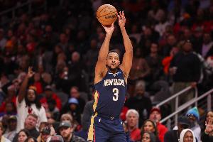 第一节,鹈鹕后卫麦科勒姆手感火热,打满首节10投6中,三分4中3、罚球3中3拿到18分外加1篮板1助攻,正负值+4。