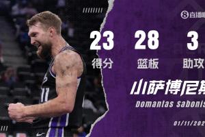 小萨博尼斯本场状态出色,不仅在内线狂揽篮板抢爆绿军,还能在外线频频命中三分惩罚绿军防守。最终他出战38分55秒,15投10中,三分4中3,爆砍23分28篮板3助攻1盖帽,正负值高达+16。