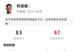 体育资讯1月11日讯 足总杯第3轮,利物浦4-0英乙球队阿克灵顿。阿诺德首发出战,贡献1粒世界波,送出3次关键传球,还有3次抢断,评分8.5全场最高。