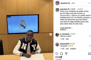“我非常高兴能够和世界上最好的俱乐部皇马签约,这对我和家人而言都是梦想成真,感谢所有让这一切成为可能的人,我已经准备好为这家俱乐部奉献一切了。Hala Madrid!”