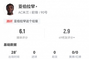 体育资讯1月12日讯 本轮意甲,米兰1-1卡利亚里。此役亚伯拉罕替补登场28分钟两次错失良机,球员全场重点数据如下↓