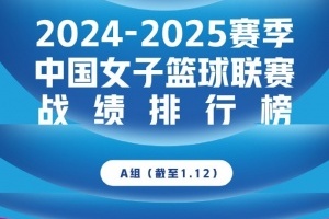 【积分榜】2024-2025赛季WCBA联赛战绩排行榜(截至1.12)新鲜出炉!