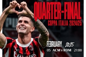 米兰官方社媒晒出海报,确认对阵罗马的意大利杯比赛将在北京时间2月6日4点开球。