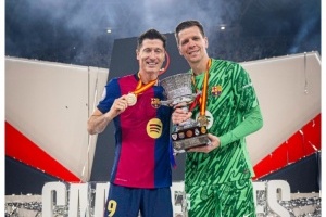 此役莱万、什琴斯尼两位波兰球员首发出战,帮助巴萨夺冠,巴萨官方社媒晒出两人与奖杯的合照,并配上波兰国旗的符号。
