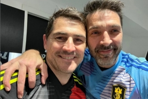 皮克创办的国王联赛此前在都灵举办了国王联赛世界杯决赛,布冯和卡西均来到现场助阵。