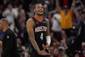 最近6场比赛(火箭5胜1负),杰伦-格林场均砍下30分4.5篮板2.3助攻1.2抢断,投篮命中率是51.2%,真实命中率高达65%。