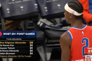 比赛进行到第三节,雷霆球星亚历山大已经砍下28分。