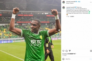 在个人社媒,马马杜告别国安,他写道:“感谢国安让我有机会为这样一支大俱乐部效力,对球迷们整个赛季的支持表示由衷感谢,我会永远珍藏这段记忆,一切顺利。”