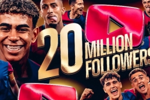 巴萨官方社媒晒出海报,确认俱乐部YouTube账号订阅量突破2000万,成为世界上首家达成这一里程碑的体育俱乐部。
