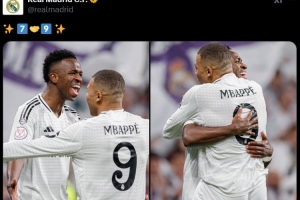 本场比赛姆巴佩与维尼修斯双双取得进球,赛后皇马官推也晒出两人相拥庆祝的照片 ,配文为两人球衣号码7号与9号。