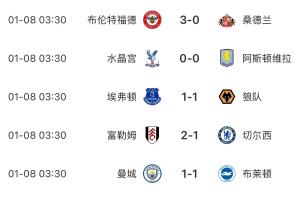 体育资讯01月08日讯 英超第21轮,先赛的曼城、曼联、切尔西、热刺均不胜。