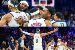对战76人之前,掘金的伤病名单里躺了整整一套季后赛轮换:约基奇、穆雷、阿隆-戈登、布劳恩、卡梅隆-约翰逊、小哈达威、瓦兰丘纳斯。