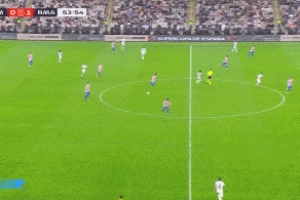 比赛第55分钟,巴尔韦德送出远距离精准直塞,罗德里戈得球轻巧摆脱了勒诺尔芒,随后单刀破门!