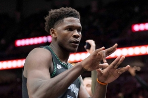 同时,爱德华兹(24岁零157天)超越科比(24岁零194天)成为NBA史上第三年轻的万分先生,仅次于詹姆斯(23岁零59天)和杜兰特(24岁零33天)。