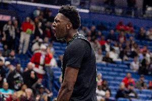 本场比赛,鹈鹕13号秀奎因出战35分钟,13中7,三分2中0砍下14分16篮板12助攻。