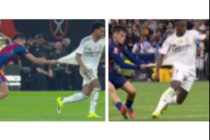 此前在西甲第10轮的西班牙国家德比,也同样贡献这一名场面,当时他拉拽维尼修斯染黄。