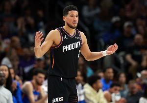 太阳球星布克出战9分59秒,5投3中(三分1中0)、罚球2中2,拿到8分1篮板6助攻,正负值+5。