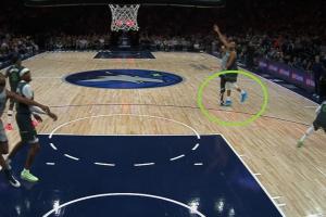 比赛第四节,戈贝尔对文班亚马三分犯规,裁判回看后认定戈贝尔垫脚,吹了他一个一级恶意犯规。