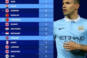 7次:阿圭罗、凯恩、萨拉赫