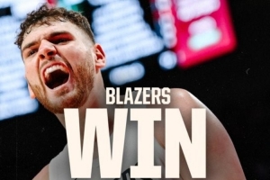 赛后,开拓者官方发布赢球海报,克林根怒吼瞬间成为封面!