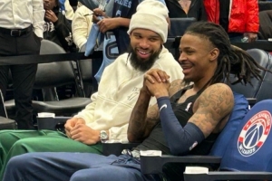 而今天,灰熊客战奇才。在本场比赛之前,狄龙现身球场,和前灰熊队友莫兰特寒暄。