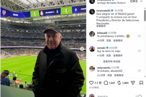 曾两度执教皇马的现任巴西队主帅安切洛蒂重返伯纳乌,现场观看了这场比赛,他在社交媒体上晒出照片,配文:“看到皇马获胜真是太开心了!而且还能与我的(巴西足协)副主席和国家队总监共同分享胜利的喜悦。”