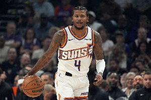 此役太阳后卫杰伦·格林迎来复出表现尚可,替补20分钟11投4中,三分4中2、罚球2中2拿到12分2篮板3助攻,正负值+10。