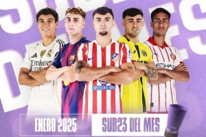 体育资讯1月22日讯 西甲公布了1月联赛最佳U23球员候选5人名单,皇萨竞各1人入围。