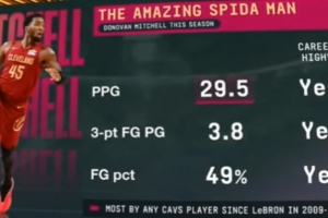 米切尔场均29.5分是自2009-10赛季的詹姆斯(29.7分)以来队史最高场均得分