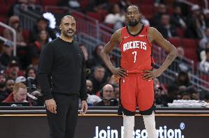 乌度卡:“ 我认为崩盘甚至在第四节之前就开始了,第三节我们就丢掉了一些势头,甚至在第二节也是。对手在对位上做了一些调整,用身材更高大的球员去守阿门,用小个子去守申京。我认为我们在进攻端变得太停滞了,过于追求特定的错位。他们提升了防守压力,把我们挤出了熟悉的出手位置。”