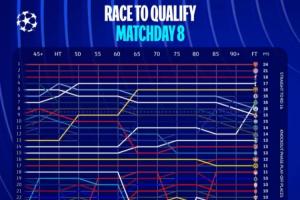 欧冠官方今日晒出了末轮比赛过程中实时积分榜的变动情况。据官方统计,末轮实时积分榜的变动达到了惊人的309次!