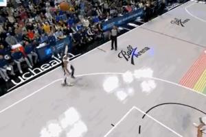 GIF-小哈达威落地踩到乔丹·米勒的脚,裁判看回放后吹三分犯规
