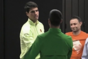 赛后现场采访,德约谈到决赛的对手阿尔卡拉斯,他表示:“赛后我见到了阿尔卡拉斯,他告诉我:‘很抱歉推迟了你这场比赛的开始时间。’我跟他说:‘我是个老头儿,我得早点睡……’我期待过几天与他的比赛。”