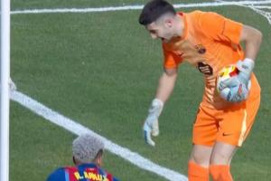 比赛过程中,曾出现令人啼笑皆非的一幕。上半场,阿劳霍和霍安·加西亚合力防下了对手的一次进攻,阿劳霍凭借与对方球员身体对抗抢占下优势身位,霍安则是出击将球没收。