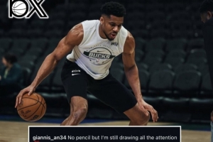 今天,字母哥在INS晒图并写道:“虽然我没有铅笔,但我依然吸引着所有人的目光💯。”