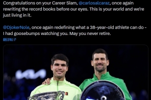 西西帕斯写道:“恭喜你完成全满贯,卡洛斯·阿尔卡拉斯!你再次在我们眼前改写了历史纪录。这是属于你的世界,我们只是生活在其中。”