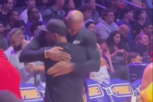 本场比赛,黑人影帝丹泽尔·华盛顿来到现场看球,他还来到詹姆斯身边,两人拥抱并寒暄数句。