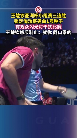在本场比赛过程中,有观众闪光灯干扰比赛,王楚钦怒斥道:“你,就你,戴口罩的。”