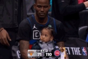 GIF-贾旺特·格林替补席抱上娃了