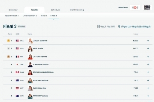 中国选手杨丫和黎睿霖分列第28和29名。