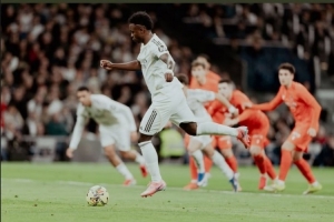 体育资讯2月15日讯 西甲第24轮比赛,维尼修斯点射双响,皇马主场4-1击败皇家社会。