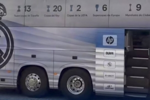 记者José Luis Sánchez报道,皇马全队所乘大巴在前往光明球场时遭球迷投掷杂物,因此不得不绕路而行。