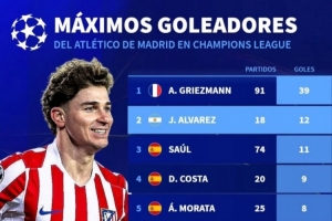 马竞队史欧冠射手榜: