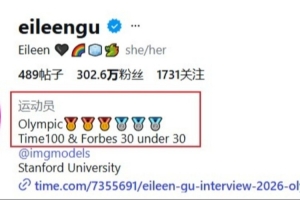 体育资讯2月23日讯 谷爱凌夺得米兰冬奥会自由式滑雪女子U型场地技巧金牌后,更新了自己的社媒简介,将其改为🥇🥇🥇🥈🥈🥈(三金三银)。