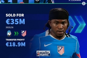 体育资讯2月23日讯 亚特兰大前锋卢克曼在冬窗转会马竞,《转会市场》也统计了亚特兰大近年通过低买高卖的盈利操作: