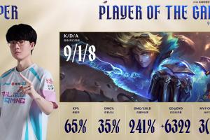 体育资讯2月25日讯 LPL第一赛段季后赛BLG击败NIP拿下赛点,Viper EZ完美表现打出9-1-8的华丽战绩斩获本局MVP。