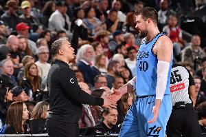 卢透露,祖巴茨告诉他卡莱尔会让他在步行者多投三分球,对此卢调侃道:“我希望他今晚能上场,这样我们就能体验一下(他的三分球)。”