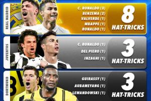 欧冠淘汰赛阶段球队戴帽榜