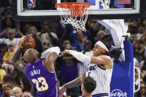 比赛最后4秒,班凯罗在詹姆斯上篮时,先用手触球,完成合法封盖并开始破坏动作,之后才与詹姆斯发生后续附带接触,这里没有犯规!
